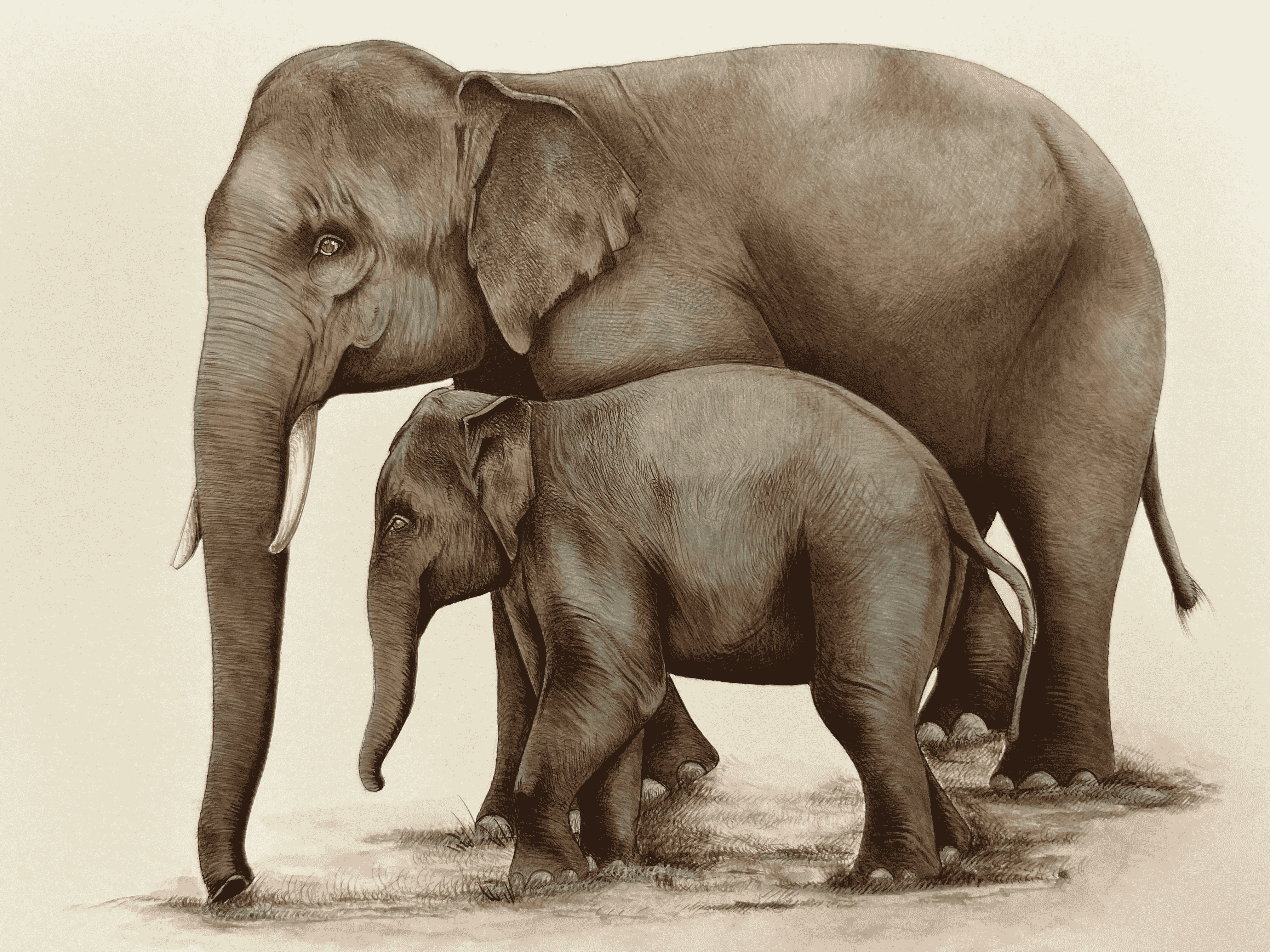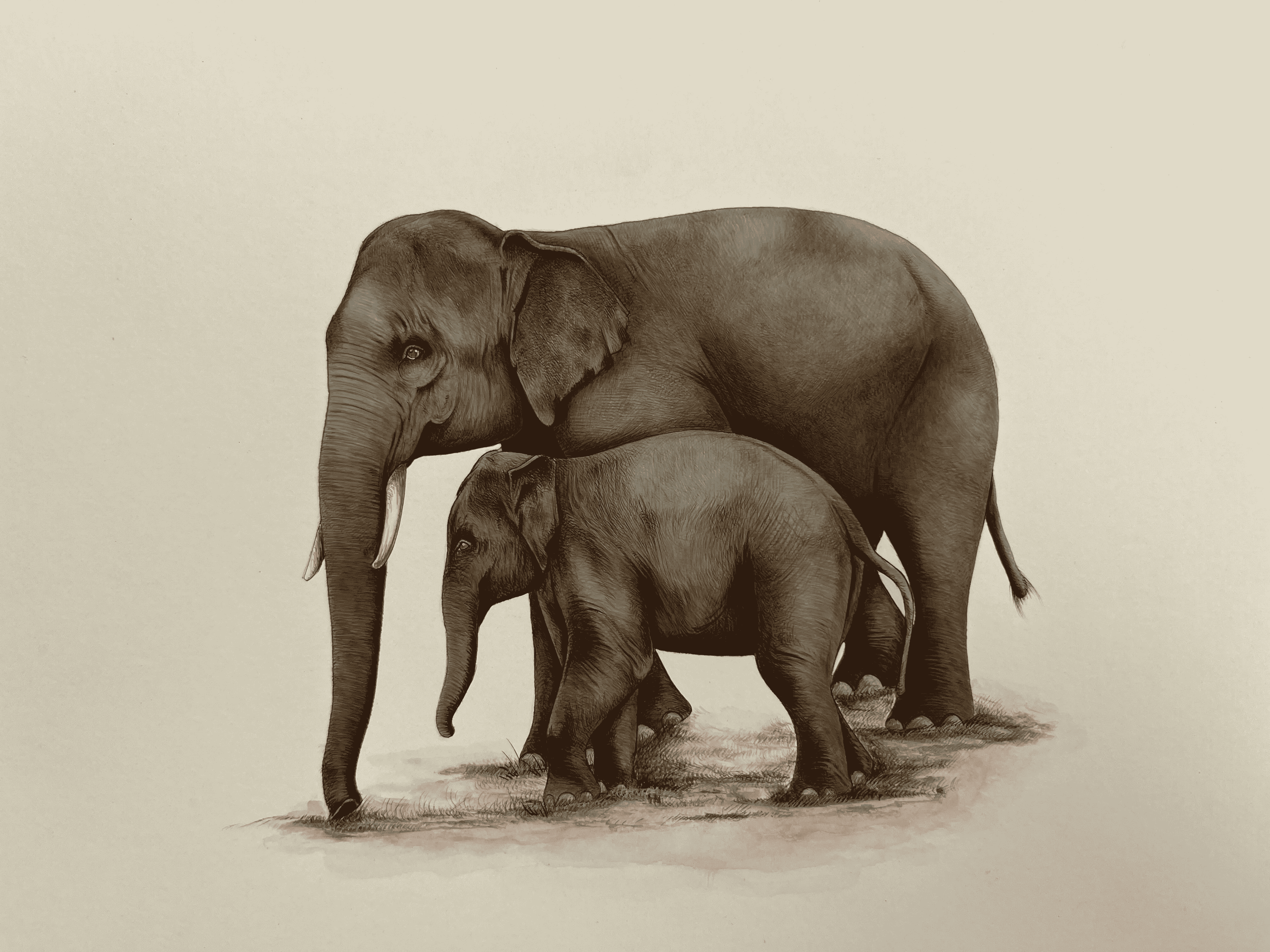 A elephant Mother and son depicting love for each other showing in realistic miniature painting.