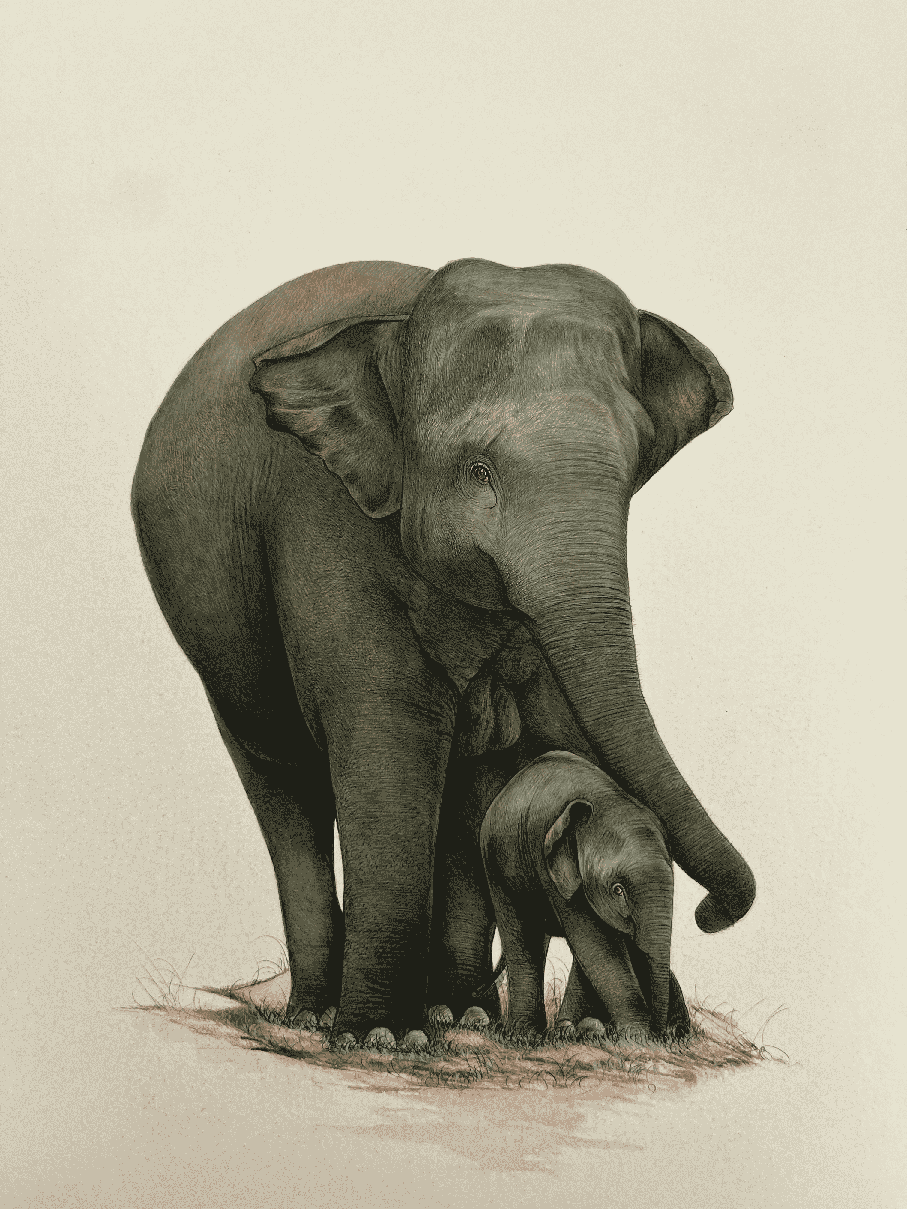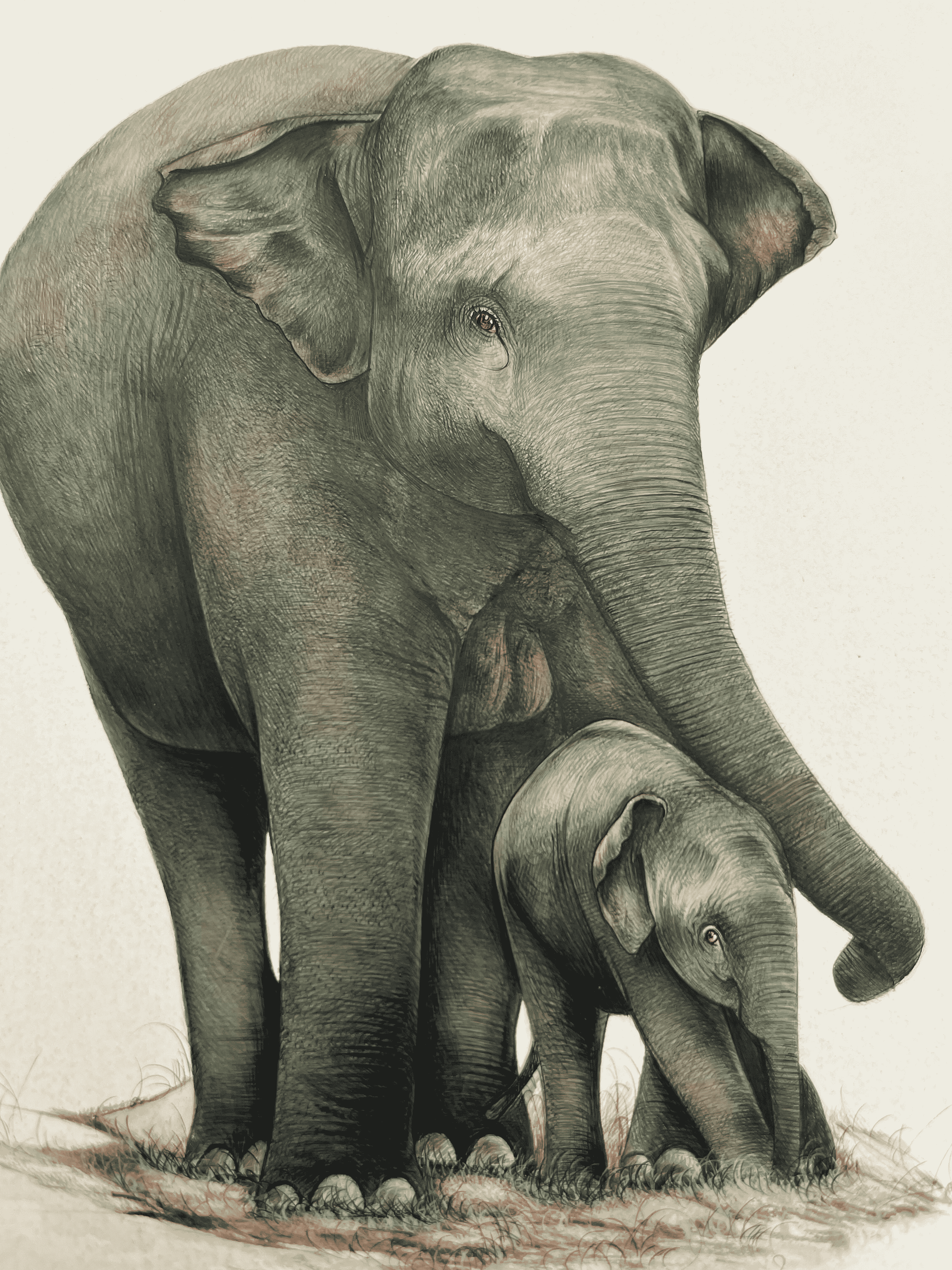 A elephant Mother and son depicting love for each other showing in realistic miniature painting.