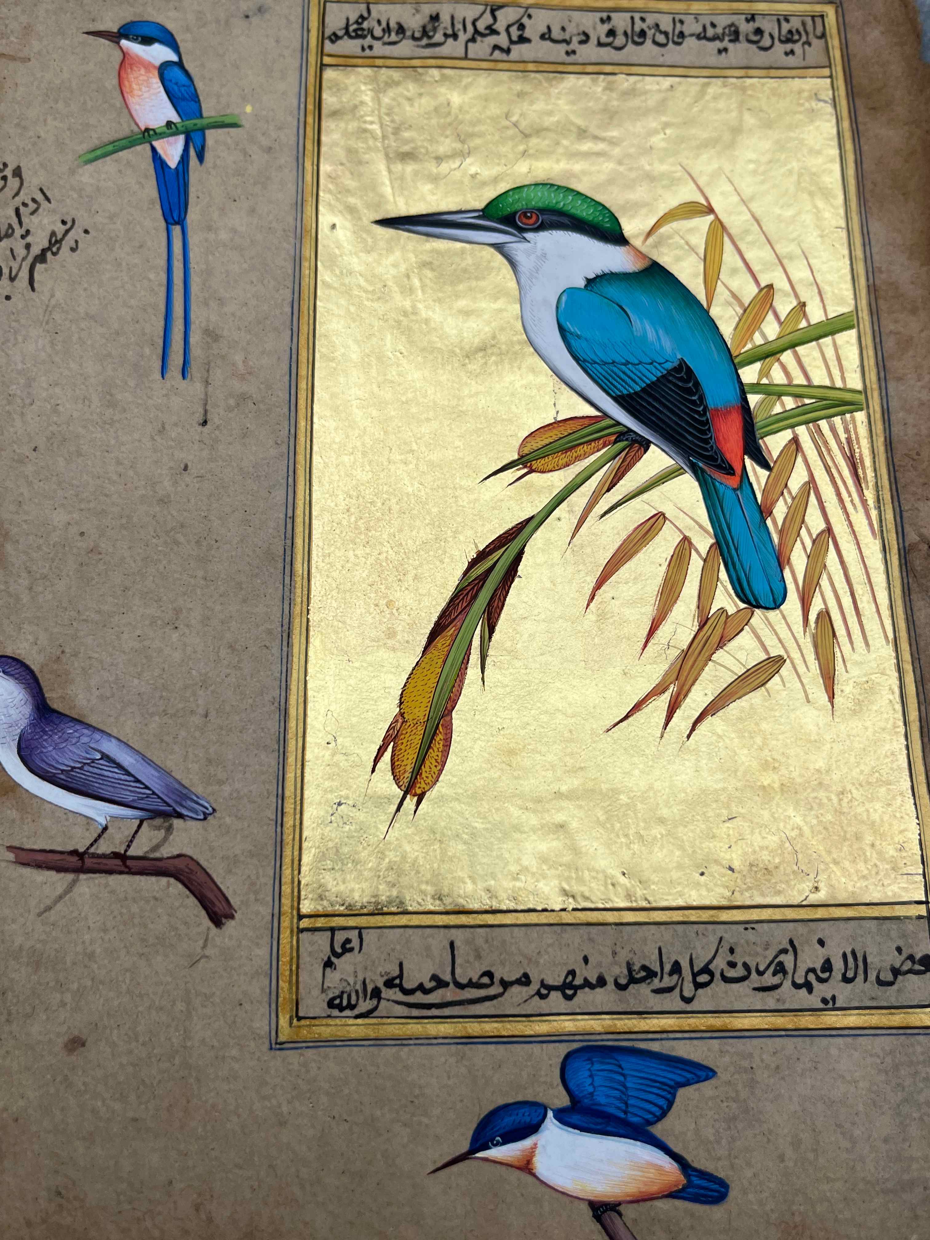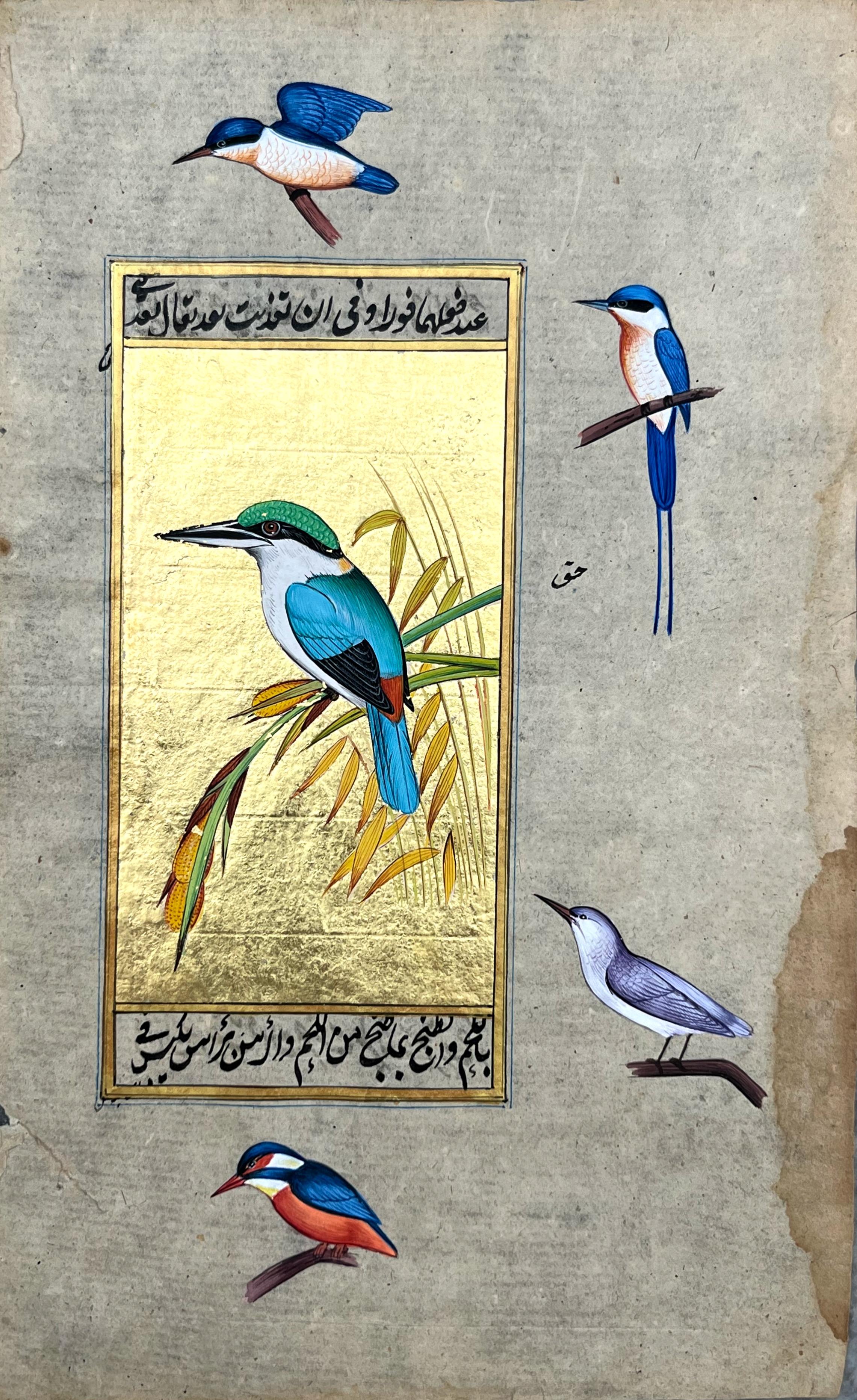 Humming Bird Miniature Painting On Antique Paper 24 Carret Gold Foil Used In Base . Natural Stone Colours Used In Miniature Painting .Done by Mohan Prajapati