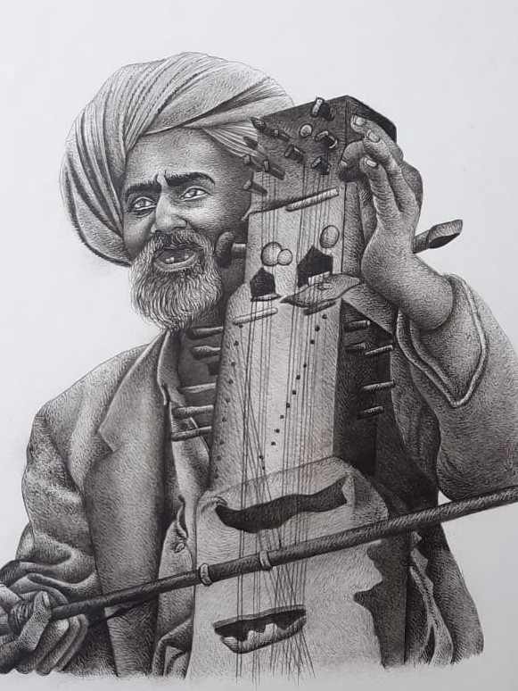 Mohan Prajapati, a masterful artist, skillfully unveils a mesmerizing tapestry of Rajasthan's folk musicians through his meticulous miniature paintings. With every delicate brushstroke, he encapsulates the very essence of these local music legends. This captivating fusion of Indian artistic roots, tracing back to the 6th and 7th centuries BCE, and the Safavid style of the Persian school, culminated in the magnificent Mughal School of miniature painting. Under the patronage of Mughal emperors like Akbar and Jahangir, miniature art evolved into the primary medium for historical documentation. The tradition perseveres, with Rajasthan proudly upholding the artistic lineage of Mughal miniature paintings. Mohan Prajapati's work breathes new life into this heritage, showcasing the vivid color palettes, intricate patterns, and timeless motifs that have endured through the ages. Prajapati’s art is a window to a world steeped in history, a celebration of the rich artistic heritage that still thrives amidst the sands of Rajasthan.