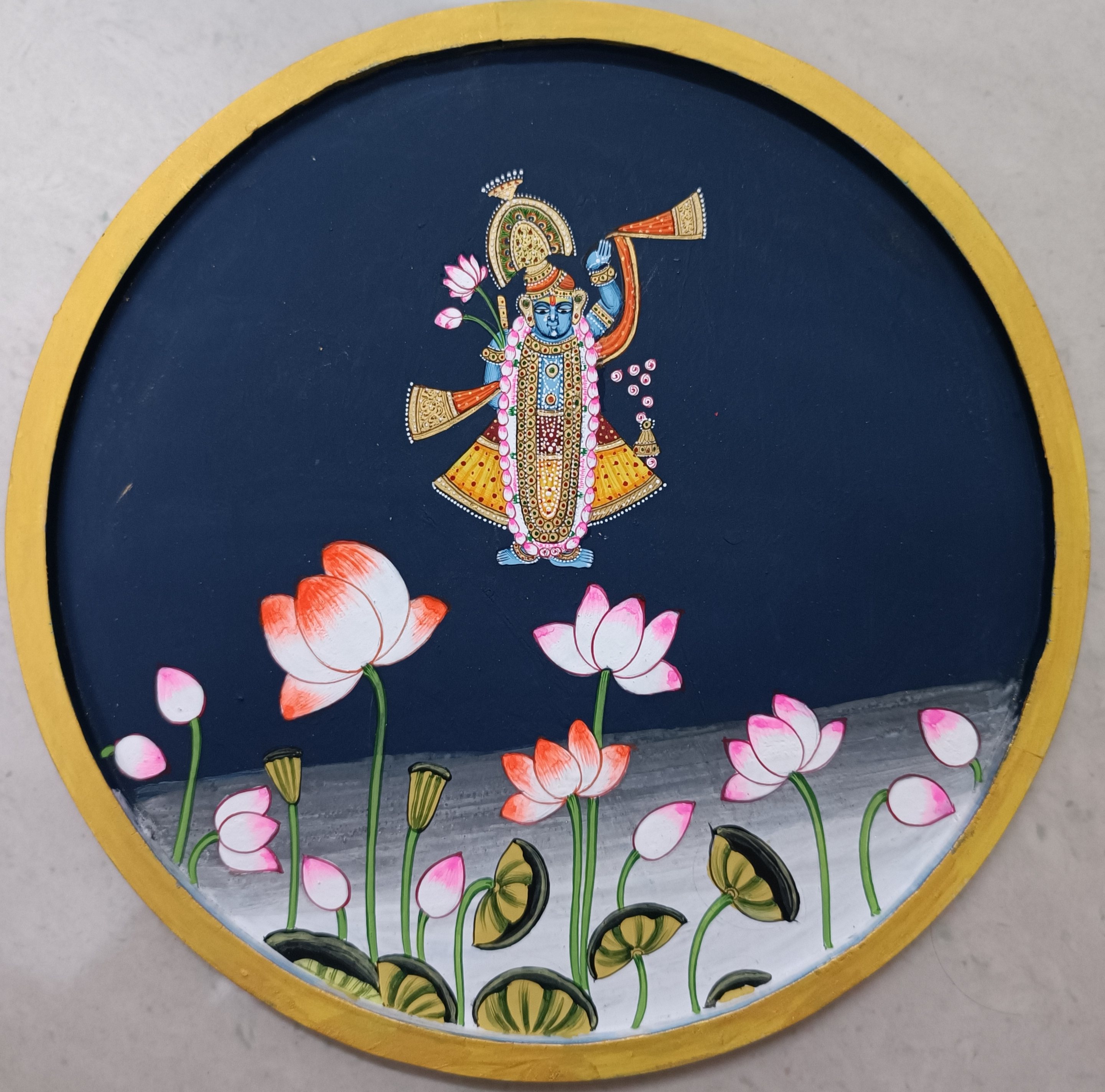 Design a magical h artisan mohan Prajapati from Rajasthan are celebrating authenticity of Pichwai Art on Wooden Wall Plates.