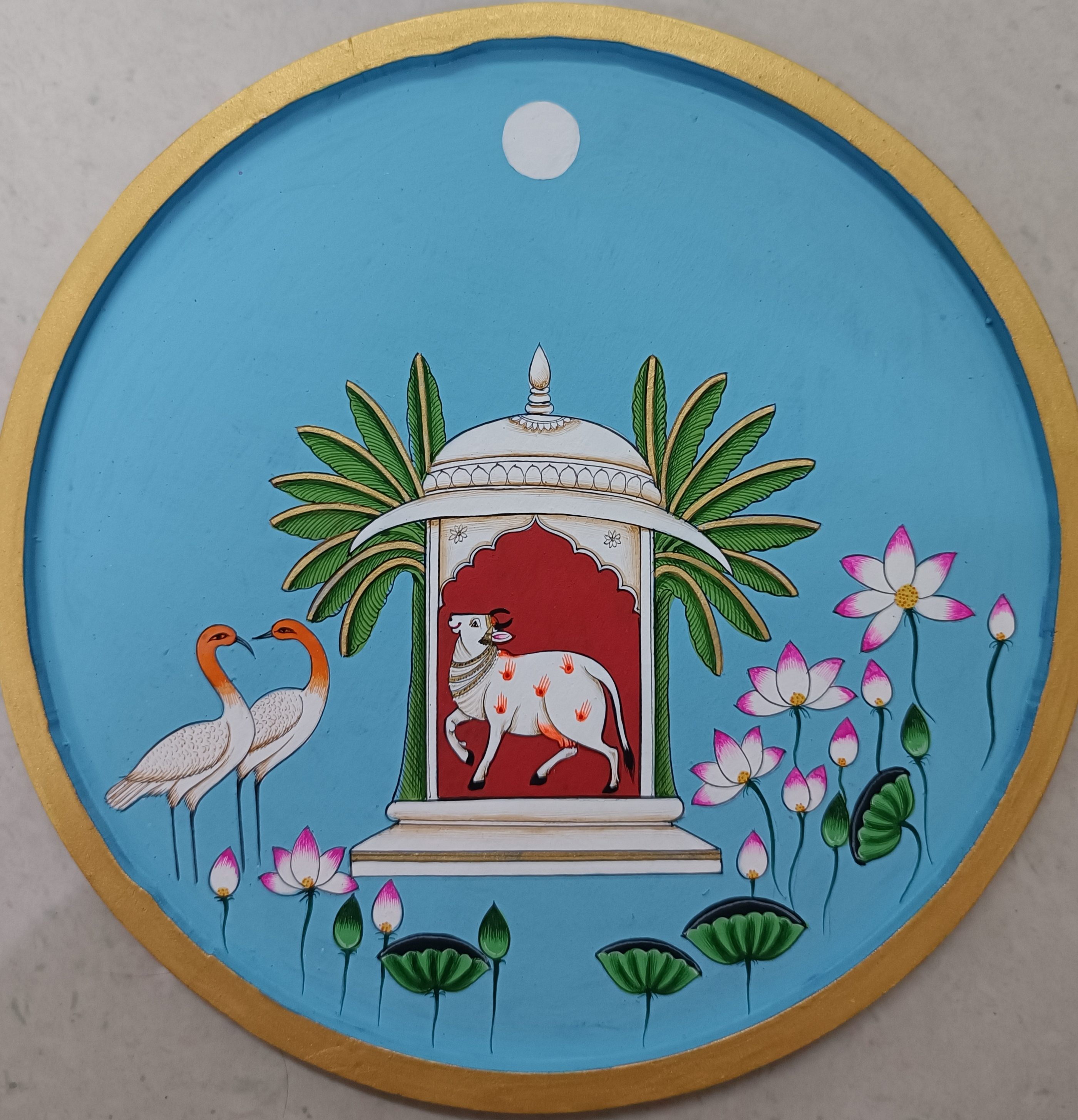 Design a magical h artisan mohan Prajapati from Rajasthan are celebrating authenticity of Pichwai Art on Wooden Wall Plates.