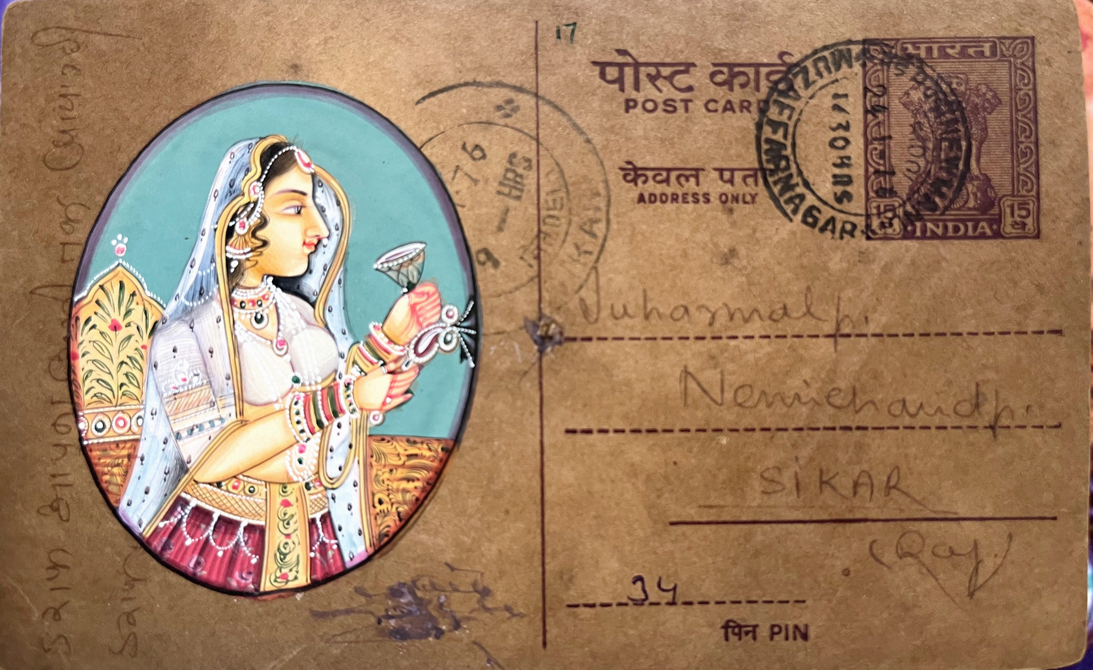 Add a touch of folklore, weaved with intricate motifs that tell a story through your decor! Originating from the land of Rajasthan, and one of the first schools of art – Jaipur the gorgeous postcards inspired by the art form of miniature paintings is recreated on preserved Old Used Postcards. An old world charm reflected from the Postcard, the miniature art form transports you to an era of royalty and grace and richness of India’s heritage. The minute details of the Miniature Work depicted in the painting down to the colours .